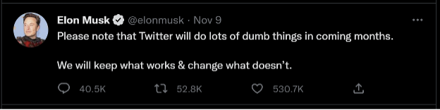 In response to Musk’s takeover and layoffs, many individuals impersonating Musk on Twitter engaged in mocking the new owner. It is worth pointing out that, if the target weren’t the Twitter CEO and richest person in the world, some of this mocking would be declared cyberbullying. Regardless, much of the criticism seems to be inspired by critics of Musk’s political views. But like most entrepreneurs, especially very successful ones, Musk is not backing down. Instead, he’s firing back with his own sarcastic Tweets and changing the rules regarding impersonation accounts. It is difficult to say how the Twitter acquisition will work out for Musk, but if his past business ventures are any indication, it would be hard to bet against him.
